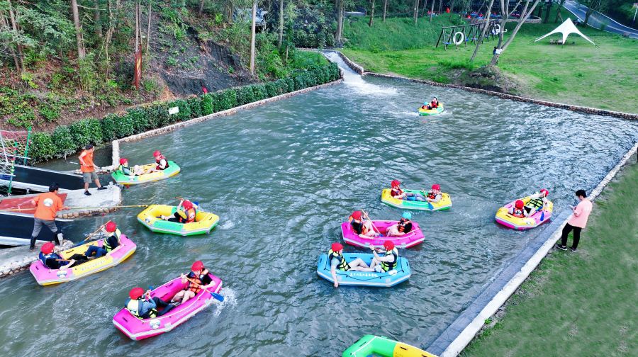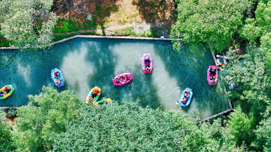 除漂流項目之外,還為游客免費贈送8大網紅樂園項目,包括云頂觀光、飛天魔毯、霍比特小屋、野趣魔網、童話秋千、蹦蹦云、白色沙灘和觀光車,無限暢玩,充分體驗樂園內的休閑度假項目!