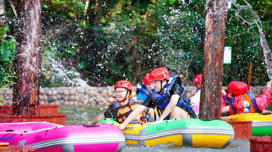 莫干山高山森林漂流分為高山猛士漂與森林勇士漂兩種漂流方式【7、8月開放夜漂】。其中,高山猛士漂全程長約3.8公里(適合冒險愛好者、身體素質較強者;年齡小于55周歲;兒童身高大于1.4m),落差約200米,驚險刺激,浪花飛濺,提升機帶你俯瞰森林竹海,感受迎風生命力;森林勇士漂全長約2.8公里(適合大部分人群;年齡小于60周歲;兒童身高大于1.1m),落差約155米,途中碧波蕩漾,清涼舒心,體驗漂流的舒爽;漂流全程用時約1-1.5小時,配套設施包括公共浴室、美食廣場以及漂流免費接駁車等服務,并提供1000+停車位!